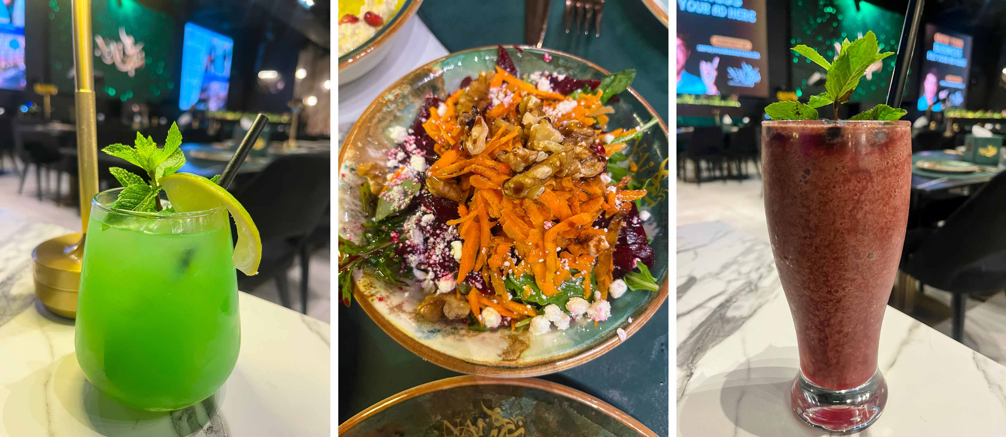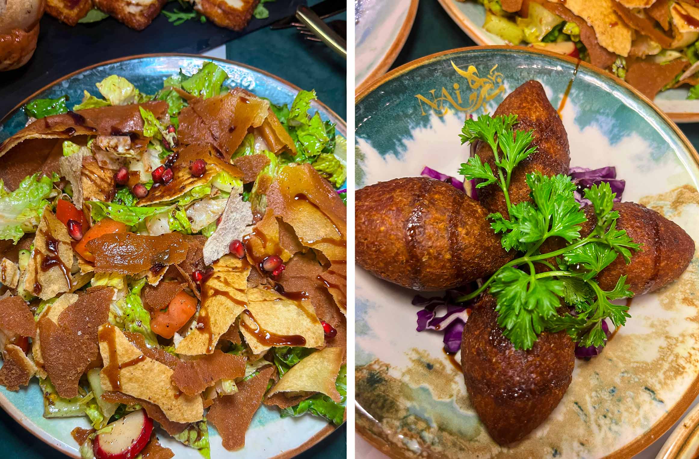 From the very first bite, Nai Restaurant made it known that it takes food seriously and knows how to have fun while doing it. We started our evening with two beautiful salads that instantly refreshed our palates. The fattoush was everything it should be: crisp, vibrant, and full of life. The crunch of toasted pita chips met juicy tomatoes, cucumbers, and radishes, all tossed in a zesty, lemony sumac dressing that gave it that unmistakable Middle Eastern brightness. Right beside it came the beetroot salad, a deep purple vision topped with creamy cheese. Earthy, naturally sweet beets paired wonderfully with a light tang, balanced with herbs and a drizzle of olive oil. It was elegant in its simplicity, and left us wanting more.