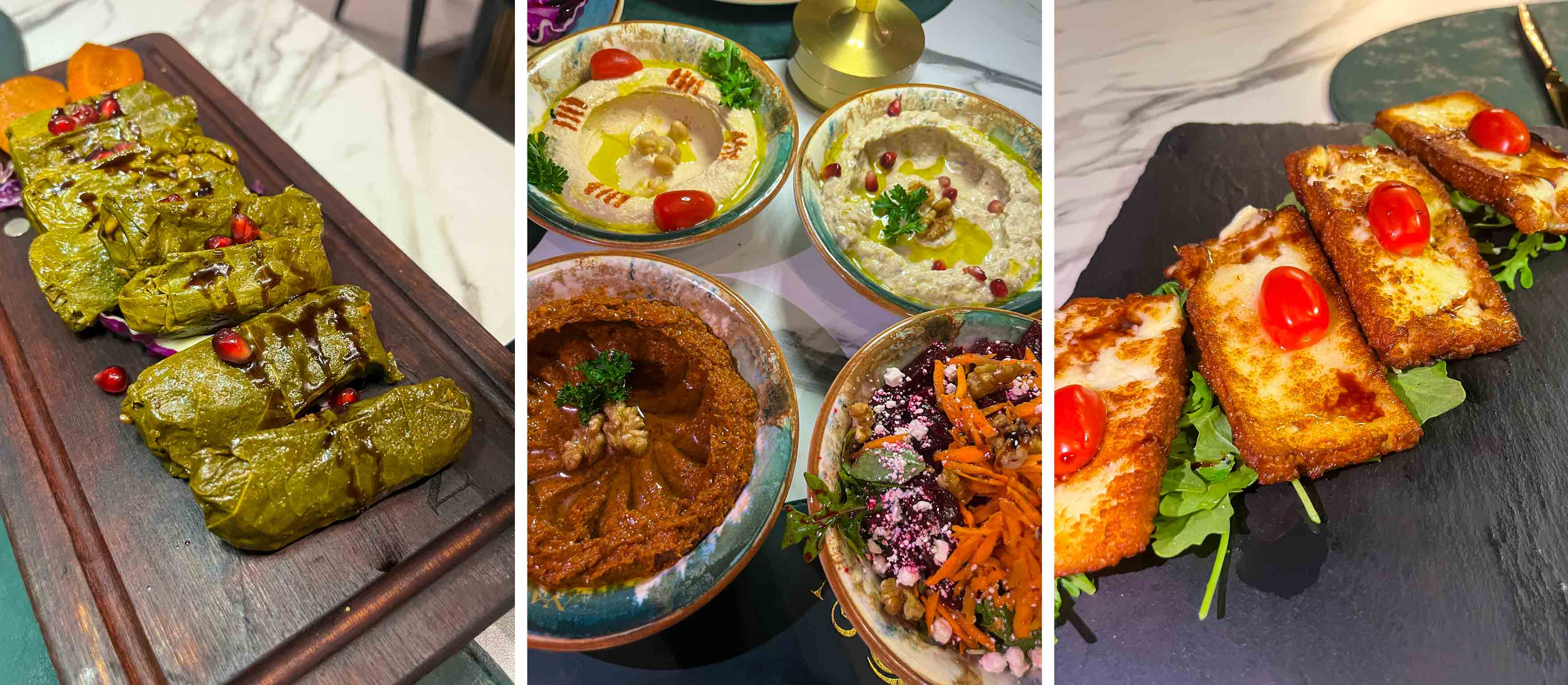 Next came a trio of hummus-dips, mohammarah, and mutabbal set the tone for the flavours ahead. The hummus was creamy and light, with a delicate swirl of olive oil and just the right amount of garlic. The mohammarah, a red pepper and walnut dip, brought a gentle heat and texture that stood out in every bite. Mutabbal, the smoky eggplant spread, was smooth and satisfying with a roasted depth that lingered on the tongue. Served with warm pita bread, this mix appetizer was more than a starter, it was the kind of dish you pause over, savouring each dip slowly, appreciating the care that clearly went into it.