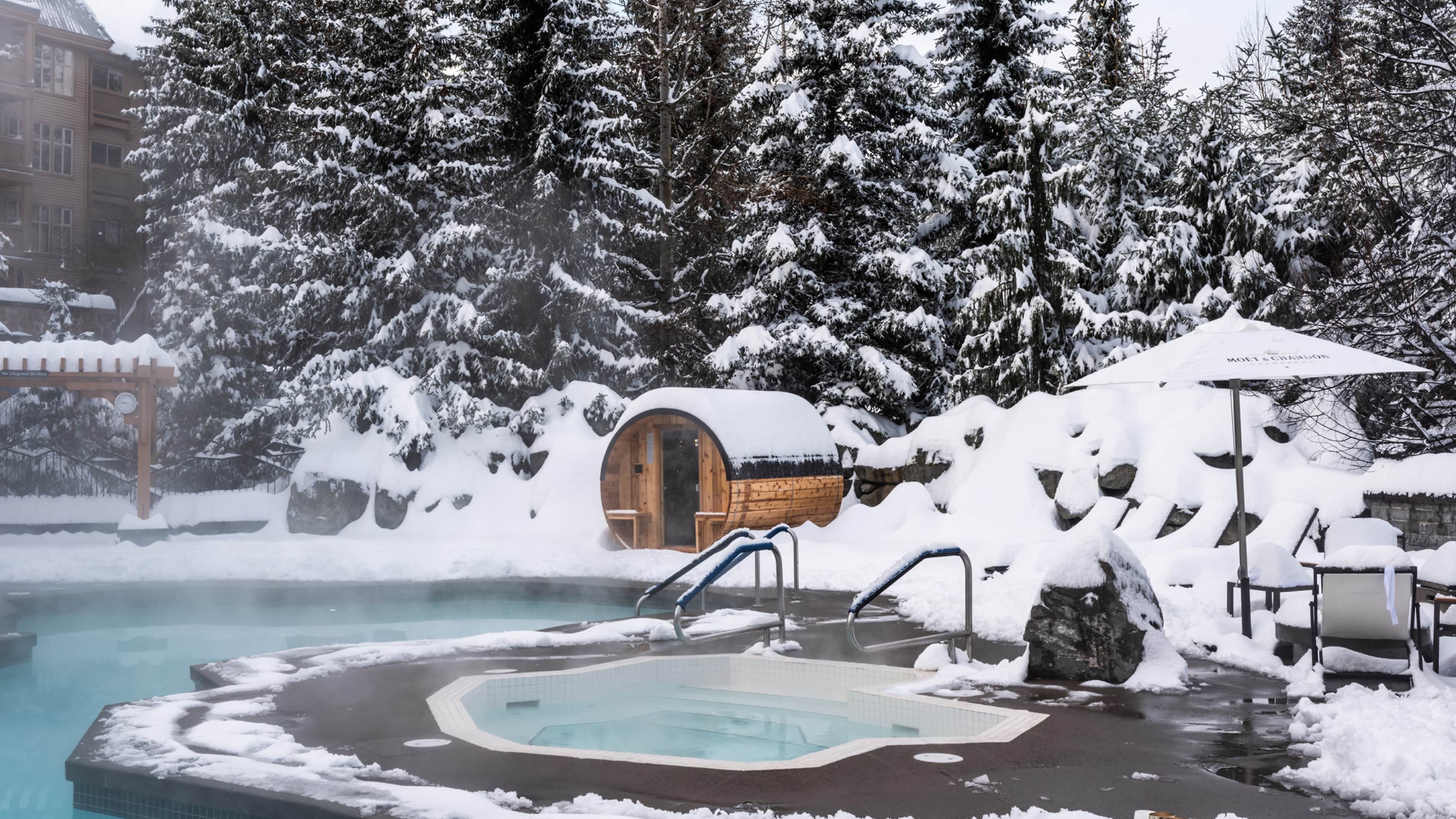 The spa is a calm and cocooning retreat where the mountains are never forgotten. Signature treatments, including the Canadian maple syrup and brown-sugar scrub draw from the region’s natural ingredients. The outdoor pool is heated year-round, so warm in winter that clouds of steam rise into the cold air as snowflakes drift down. Three hot-spring-style whirlpools, a cedar sauna, eucalyptus steam room and a well-equipped gym complete the wellness offering.