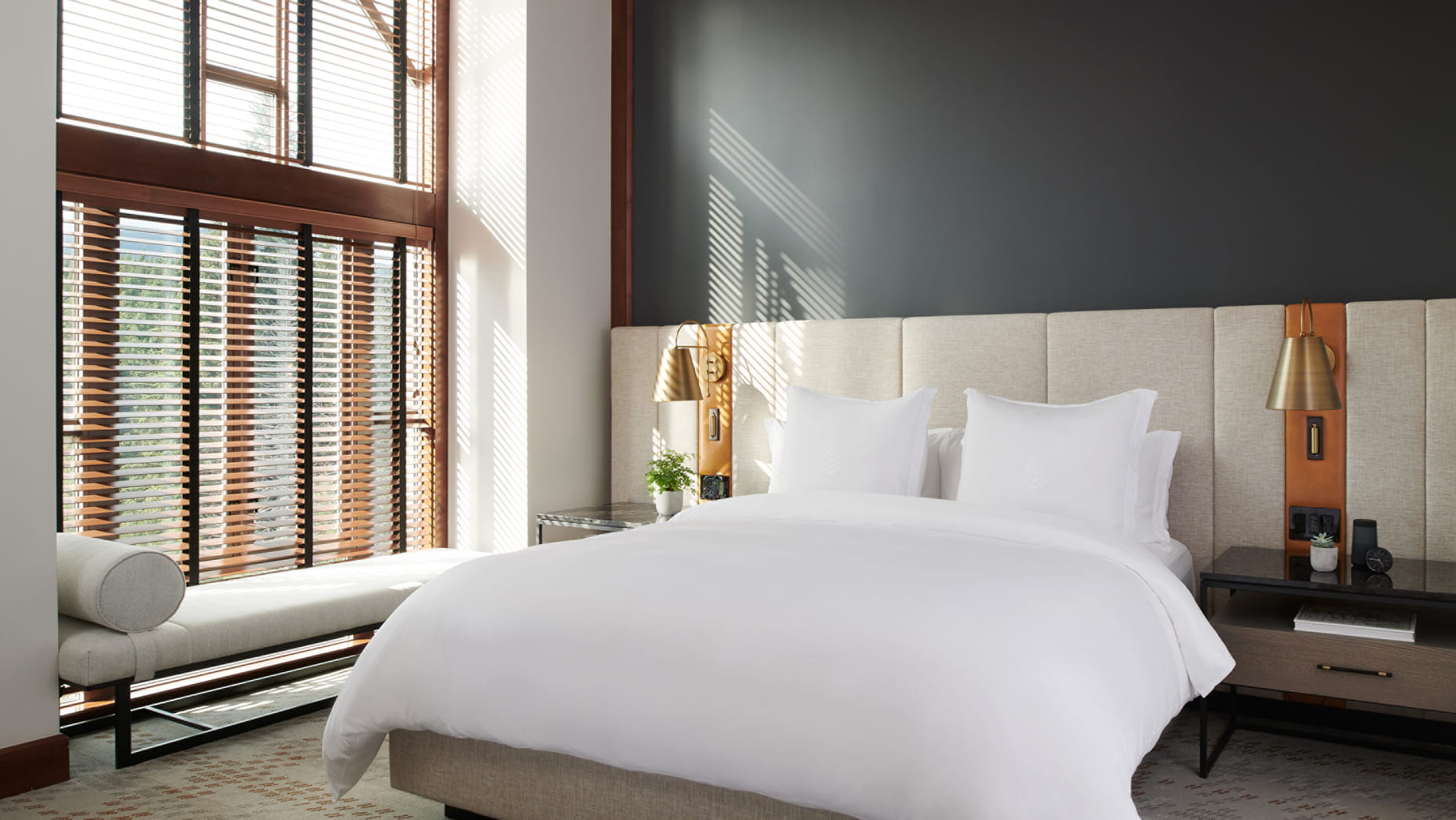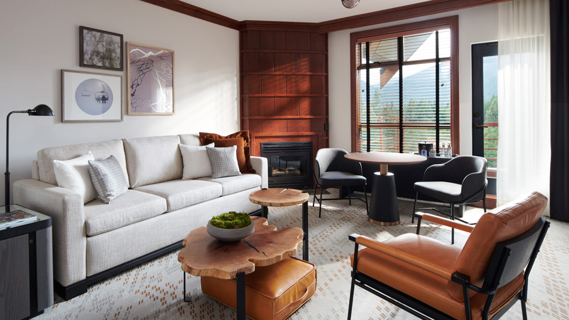 For all its scale, 273 rooms, suites and residences, the resort feels surprisingly personal. These are some of the largest rooms in Whistler, designed for the rituals of mountain living. Every room has a granite fireplace; many have balconies with views of the forest or peaks. Interiors draw inspiration from the landscape: ash-wood cabinetry, tactile textiles, iron-frame leather chairs and mid-century touches that nod to a more glamorous era of alpine travel.