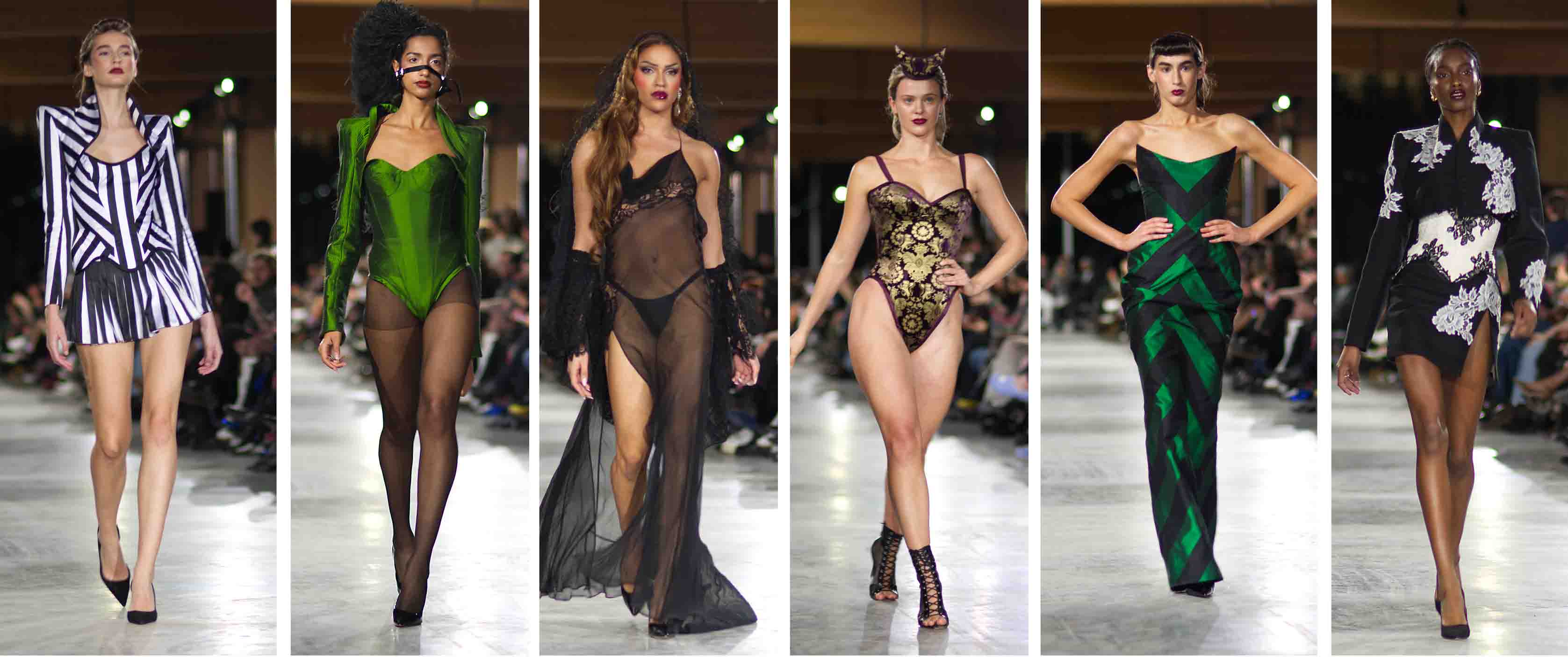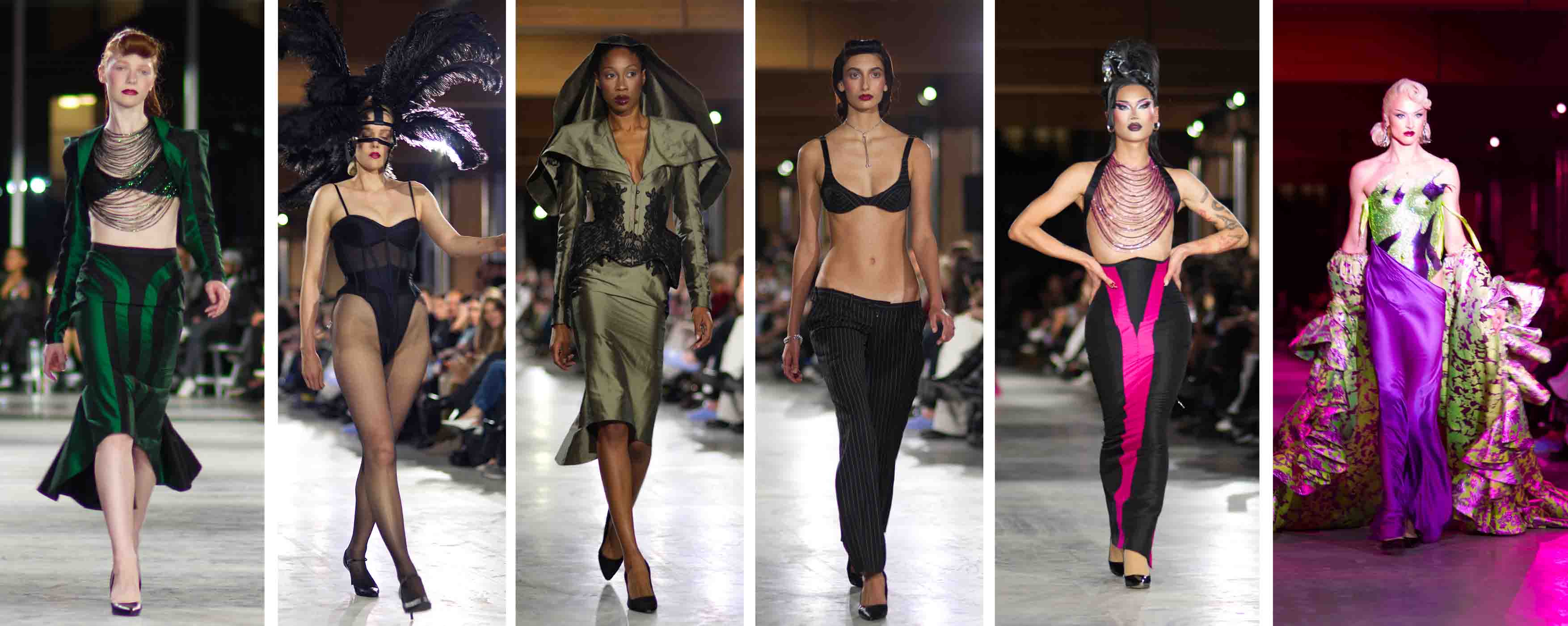 The PHYLLIS collection truly captures the essence of Gothic Expressionism while exuding that charming “Burtonesque” vibe. It masterfully combines dark, moody elements with a touch of fantastical whimsy and dramatic flair and glamourous color. Attending the runway show felt like stepping right into an animated scene from a dystopian, monochromatic Gotham City as the backdrop to his creations. It was a spectacular display of a collection that radiates fun and confidence, leaving everyone buzzing with excitement!