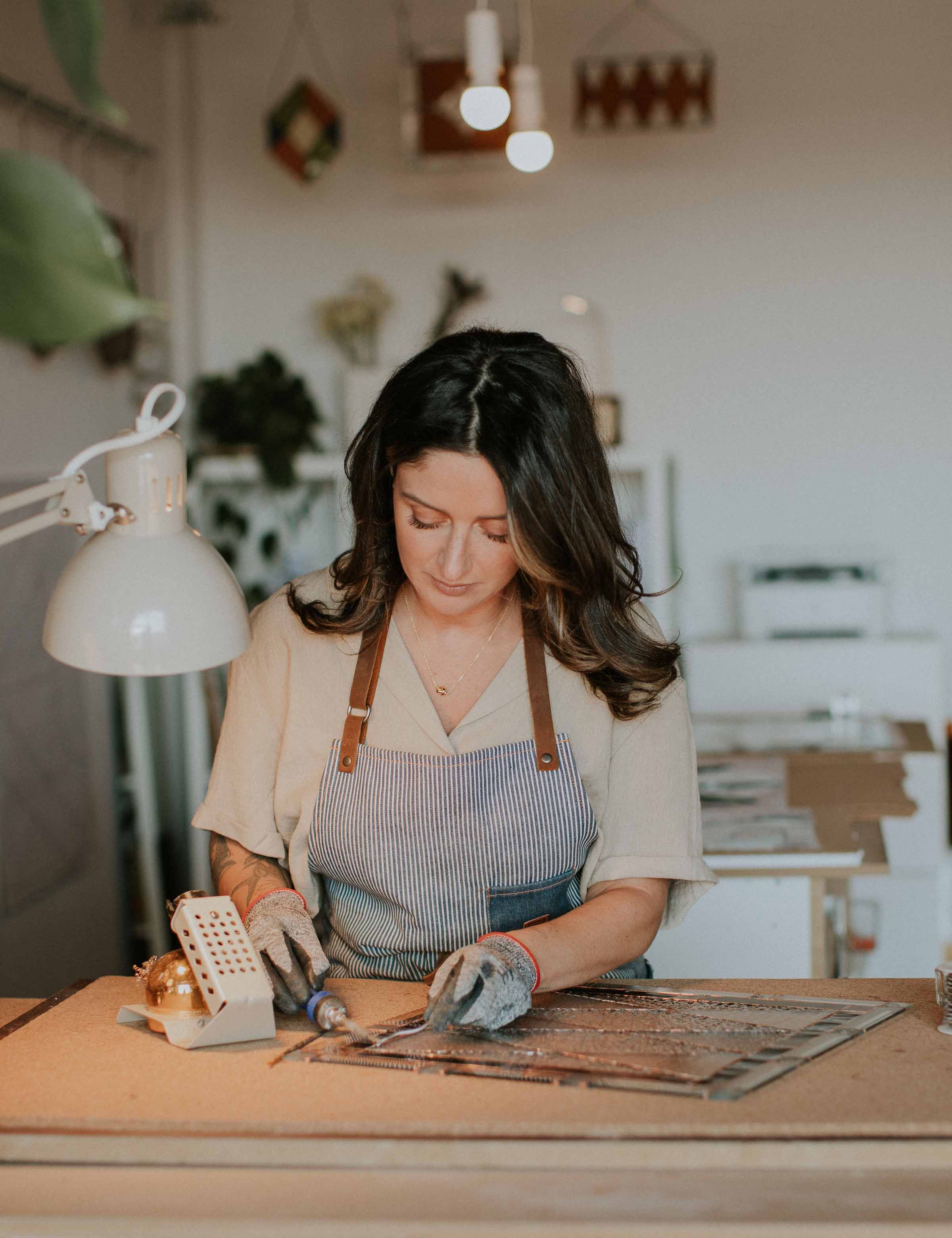 A few years ago, I was on a road trip and met a stained glass artist. She made modern ornaments and decorative, nature-inspired panels that felt much more contemporary than the stained glass I had known. It inspired me to learn. I took one workshop and I was instantly hooked. The range of tasks throughout the process kept me engaged in a way I had never felt with other forms of art. I continued learning with a mentor, along with lots of practice and trial and error. I haven’t stopped creating since that first workshop.