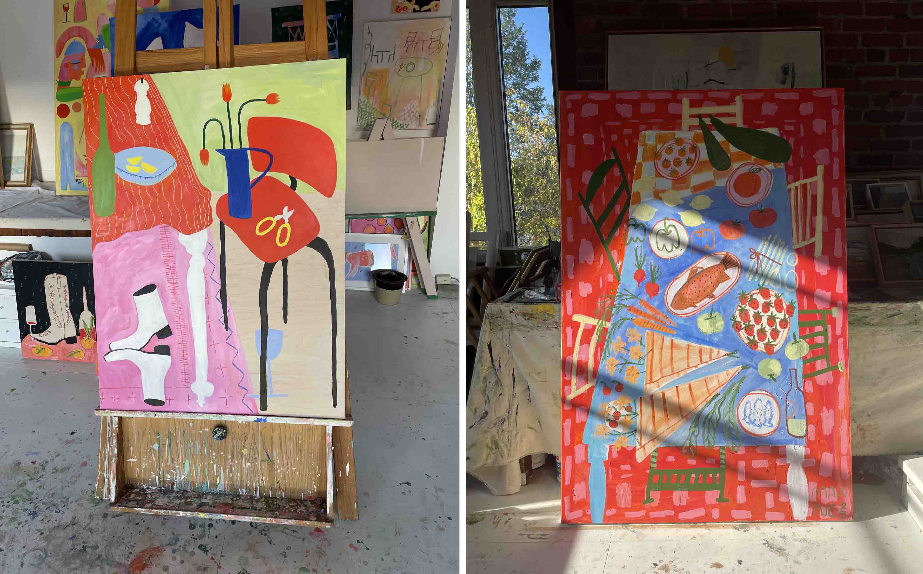 I usually say I make large-scale still-life paintings with lots of colour and joy. A bit folk-art-ish and playful as well.