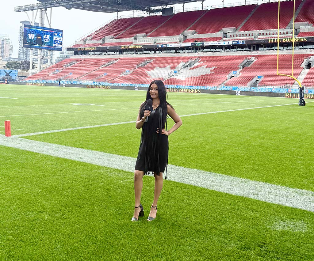 One of my biggest game-day mishaps happened while covering the CFL. We were all set on the field, ready to capture footage and film, when suddenly it started pouring rain like, full-on downpour. My network videographer and I got completely soaked. We tried to tough it out with these plastic ponchos that barely did the job, looking more like walking rain clouds than professionals. But despite the weather, we still showed up and covered the game because the opportunity was just too awesome to miss. Looking back, it’s one of those moments that reminds me how unpredictable and fun this job can be!